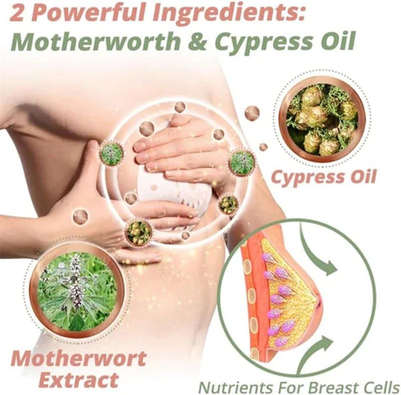 Herbal Plant Extract : It has properties that promote blood circulation and stimulate breast tissue growth, thus helping to achieve fuller breasts.